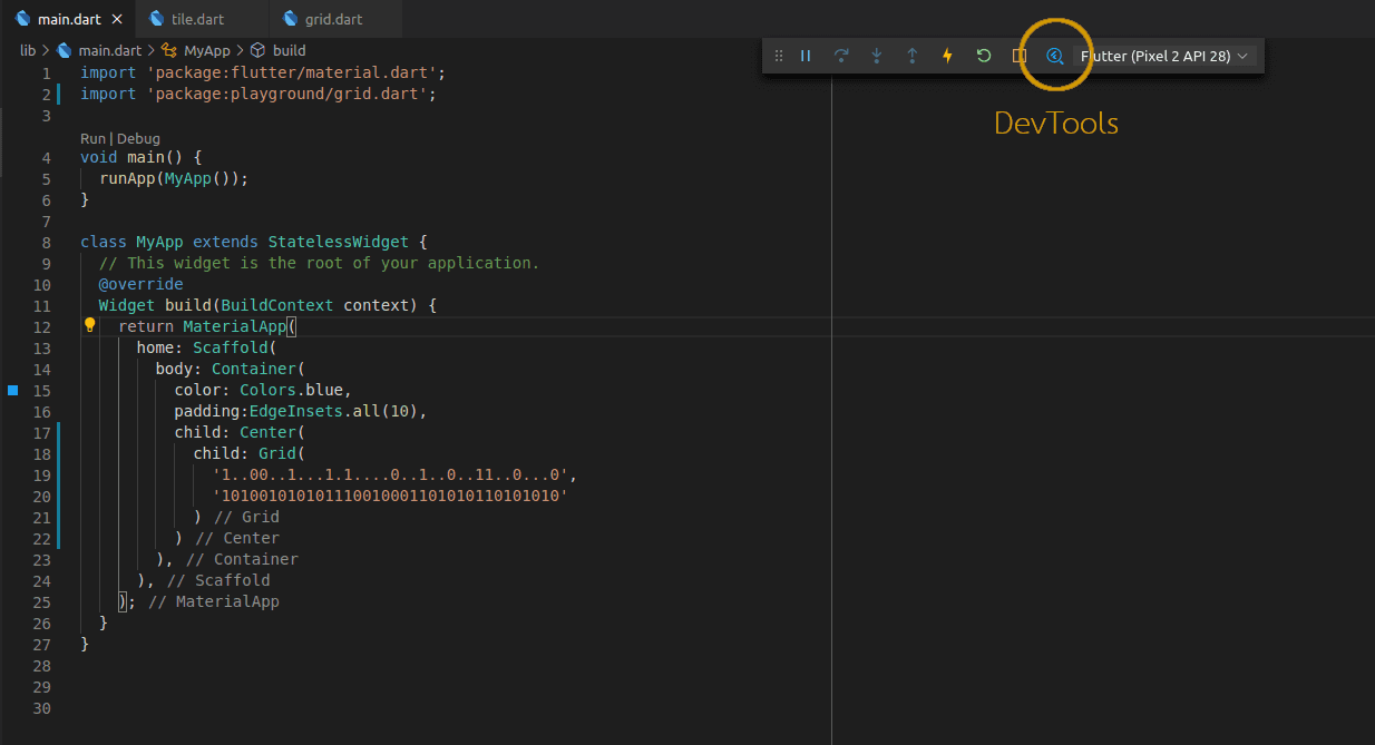 Let’s start with the Tile widget by creating a new file named tile.dart in the lib folder.